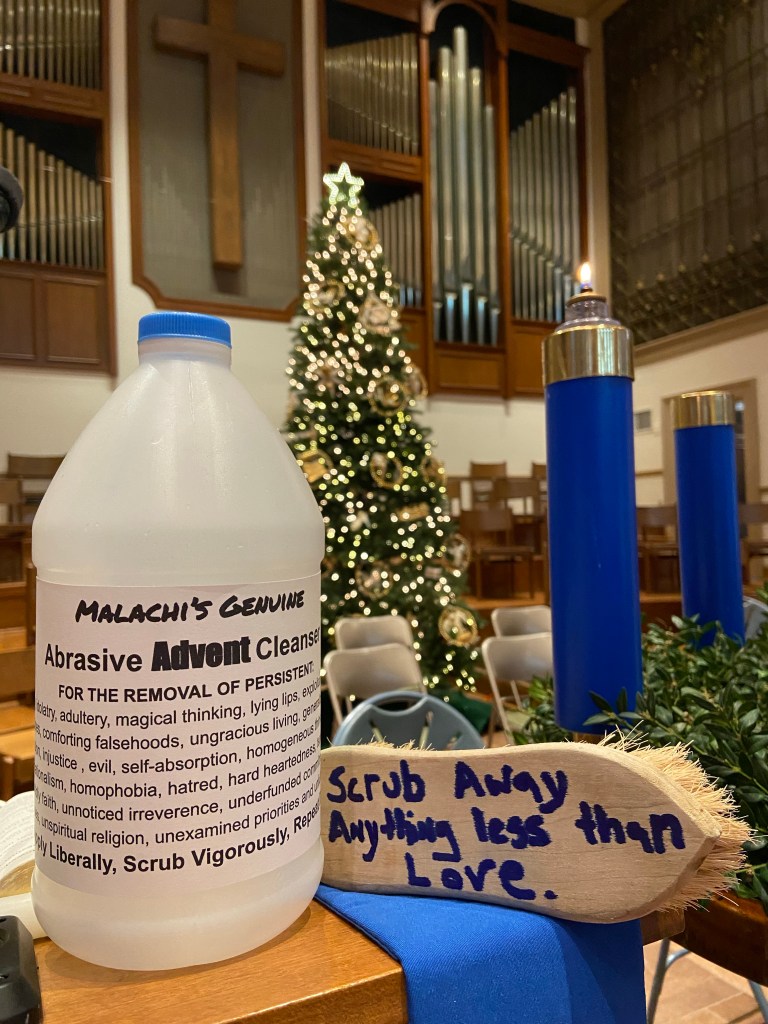 How will Malachi‘s day of holy justice, community, and hope arrive? When will the God Of Justice show up? Perhaps, Advent arrives when we invite God into the center of our hearts, our values, and our decisions. Maybe our Advent begins when we radically scrub our lives of everything less than love.