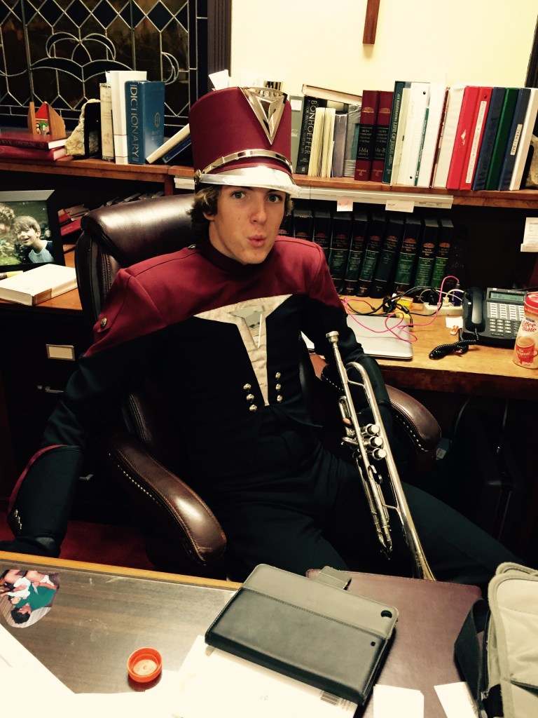 Pulling into the church parking lot, a gaggle of high schoolers tucking, trumpets and oboes under plastic ponchos, crowded the doors. Something did not seem right. It seems the Moore County band heard of a refuge from the rain from the Tullahoma teens. Soon 120 Tullahoma teens dashed in followed by the Manchester band and then Winchester. Four hundred wet uniforms, 800 grassy dress shoes, color guard flags along the back wall, wet trumpets on the pews, and a line of bass drums nestled between the back two rows. I have rarely seen so many grateful teenagers rejoicing to just be in church.